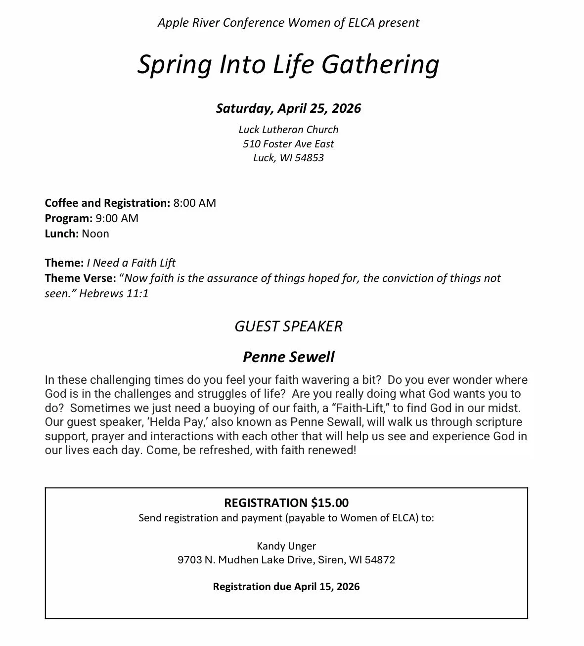 We look forward to meeting you and sharing what God is up to at Luck Lutheran.