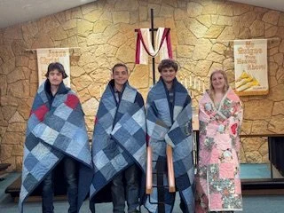 Graduation 2025: Graduates were wrapped in hand-made quilts from our members - wrapped in God’s love to remember they are always loved as they take their next step